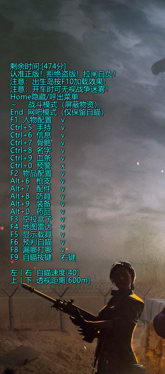 功能介绍:透视-自苗-物品显示-小地图雷达 支持系统:W10 W11 注意事项:有记忆功能,退游戏不用重新开启 稳定性:中小号娱乐 注:游戏必须无边框 辅助价格:18/6小时/28/天